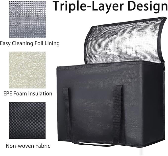 - 【KEEP FOOD WARM】:The reusable storage bags work great for food delivery for Uber Eats. They are insulated tote bag to keep our food nice and cool. Excellent product for delivering hot food! Keeping food cold/frozen during warmer weather. They are also great to use when you travel to family gatherings with pies, pizza or salads. Large food carrying bags, xl thermal bags for grocery carrier