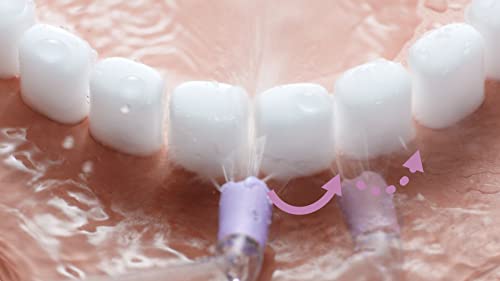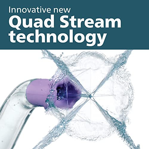 - The Quad Stream nozzle concentrates water into four wide streams to clean between teeth and along the gum line.