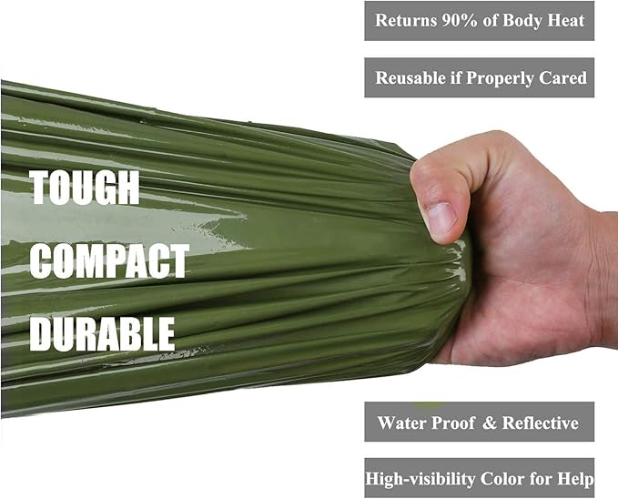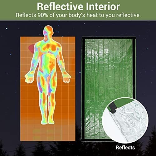 - Multipurpose use: It can be a survival emergency bag, poncho, emergency shelter and more, suitable for your out bag.Emergency sleeping bags perfect for emergency situations where warmth or protection from all-weather conditions is required. Helps prevent hypothermia and shock by retaining/reflecting up to 90% of a user's body heat