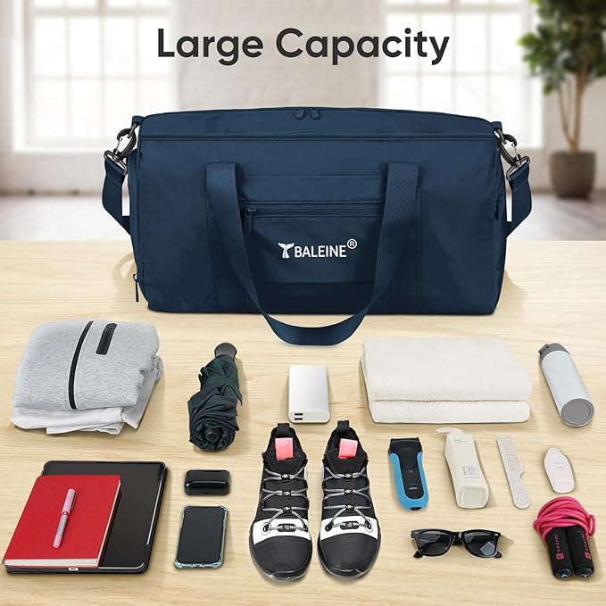 BALEINE Gym Bag for Women and Men, Small Duffel Bag for Sports, Gyms and Weekend Getaway, Waterproof Dufflebag with Shoe and Wet Clothes Compartments, Lightweight Carryon Gymbag (Blue)