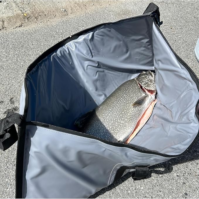 • EASY TO CLEAN: Heavy-duty heat-sealed, fiber-interlaced skin construction does not leak so your boat stays clean. Designed with heavy-duty 22oz polyester Tarpaulin interior lining, the cooler fish bag makes cleaning fast.Rinse out the inside and the bottom with a spray bottle of soap/water, invert it to dry,it's ready for the next day