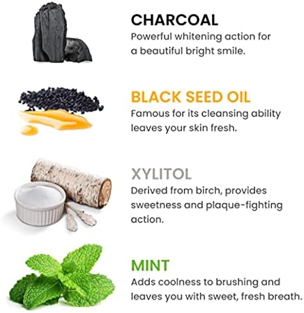 • UNIQUE CLEANING AND PLAQUE FIGHTING INGREDIENTS: Let the powerful whitening action of Charcoal from Coconut Shell powder and the famous cleansing ability of Black Seed Oil leave your mouth feeling fresher and your smile looking brighter.