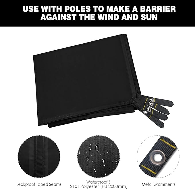 • ✔ EASY TO USE - Unfold the camping tarp and lay it on ground as a tent footprint; use stakes or guy-ropes to fix the mat through the metal grommet eyelets when using it as a sun canopy