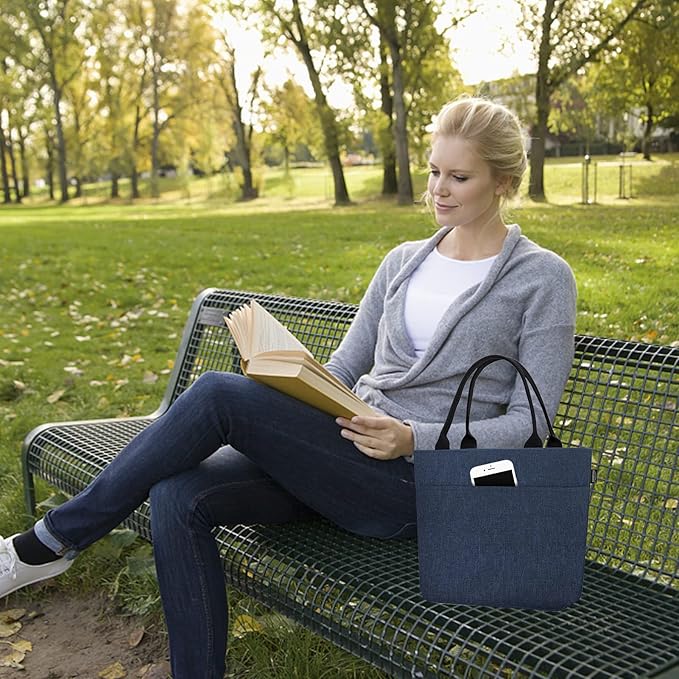 Aosbos Insulated Lunch Bag for Women, Blue, 10.0L x 5.5W x 10.0H Inches, Leakproof & Waterproof, Long-Term Insulation, Stylish & Portable, Perfect for Work, Travel, Shopping or Outdoor Activities