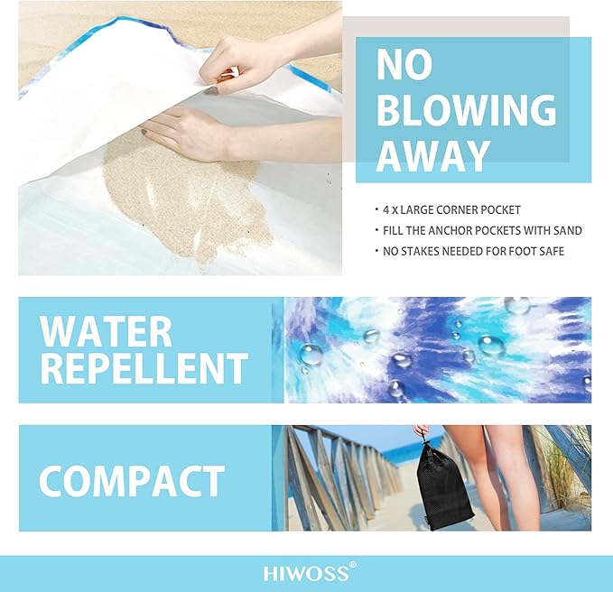 • 【UNIQUE DESIGN, 4 CORNER POCKETS】The eye-catching designed beach blanket, with quality in appearance, will make you stand out on the beach! You can easily find your family and friends on the beach without worrying about getting lost. At the same time, the beach mat is designed with four built-in corner pockets that prevent the blanket from blowing away.