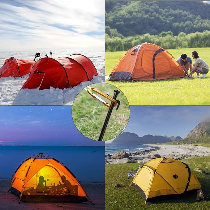 - MULTI-USE: Tent stakes are suitable for nailing tents, canopies, tarps, and etc. to the ground. Perfect for outdoors camping and backpacking. Long and large tent stakes make sure your camping trip safe in the tents.