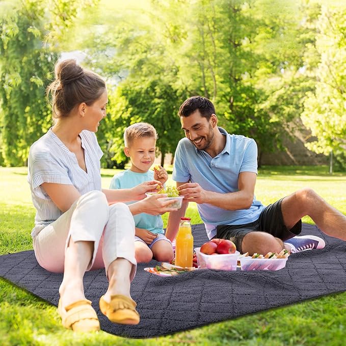 - Plush and Comfy: Outdoor Blanket is made of 150D oxford backing and 250gsm polyester sherpa lining, filled with 60gsm polyester wadding, thick enough to keep you cozy all day