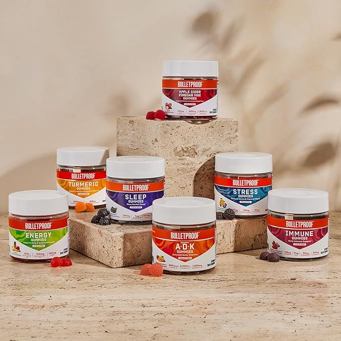• Contains one 60-count jar of Bulletproof Sugar-Free Peach Ginger Turmeric Gummies