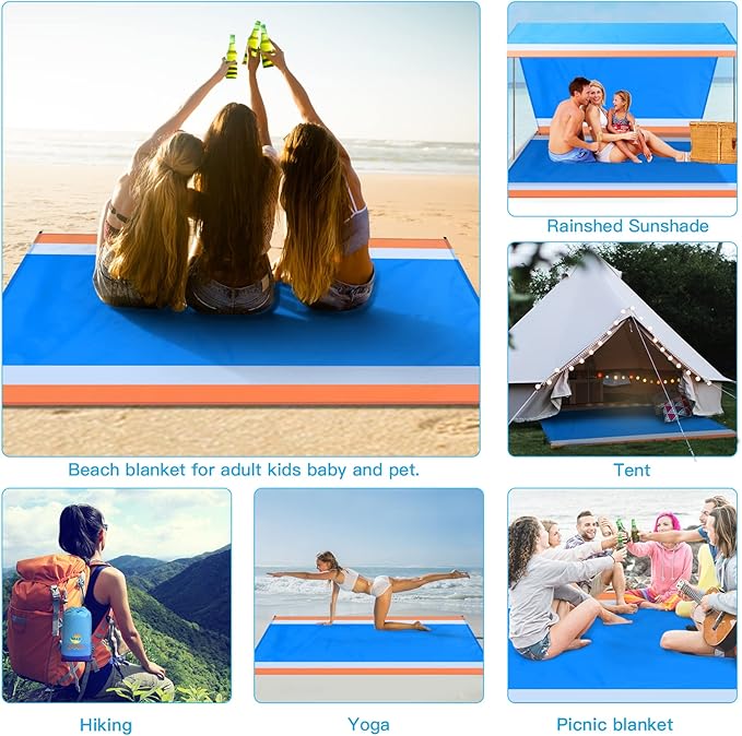 - 🏕️Beach Blanket Oversized:Good tear resistance,dry quickly.Also can be used as a rain shed,sunshade,tent,toddler crawl,emergency mat.Feel comfortable to lying down.Won't irritate your skin,better professional fabric sewing.