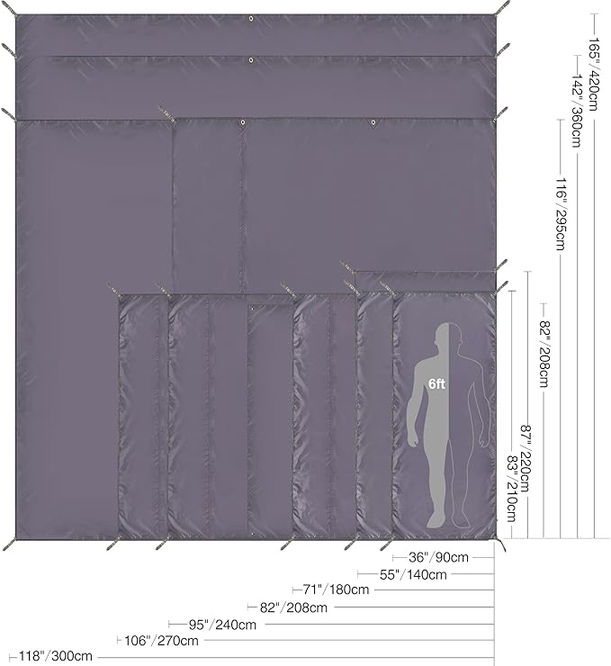 - Portable & Compact: The tent tarp can be packed into a compact size (11.8x6.3x3.9”/30x16x10cm). Comes with a drawstring pouch for easy carrying. Weighs 2.9lbs/1.3kg.