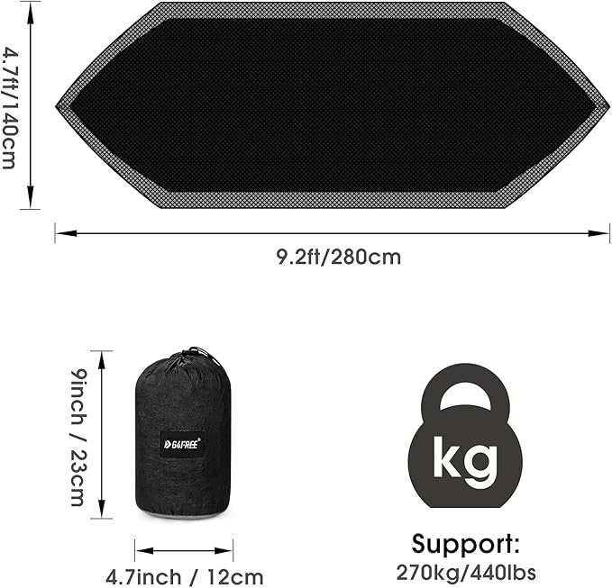 - Large size and Zipper design: this double hammock size is 110ββx55ββ (280*140cm) , has a lot of space enough to fit two adults or a couple of kids, comfortably holds up to 595 pounds(270kg) and can be zip with the mosquito net or unzip the zipper as a normal tree hammock as you like.