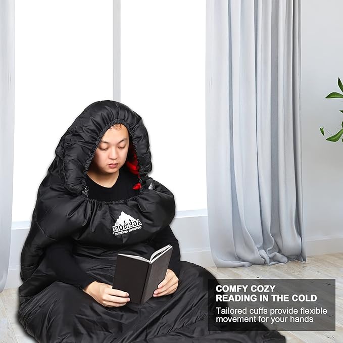 - Comfortable and Convenient: Cotton flannel lining are skin-friendly, soft and warm feels like bed sheets. Inner storage pocket, perfect for keeping your keys and phone accessible. Windproof bar keep warm. Special design, out hands make more agile. The zipper of the foot can be opened if you feel hot.