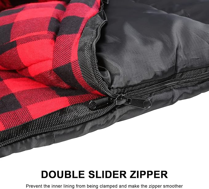 - Larger and Softer: Long size is 91'x35'/230cm x 90cm. Perfect XL cotton flannel lined sleeping bags for adults of 6'6' in tall. High-quality and durable 210T polyester ripstop fabric, waterproof and stands up to years of use.
