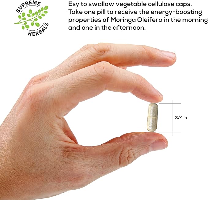 - PACKED WITH NUTRIENT-DENSE INGREDIENTS β Each serving of two capsules delivers 1000 mg of pure moringa powder, providing essential vitamins and minerals such as Vitamin C, calcium, potassium, and iron, making it an excellent addition to your daily regimen.