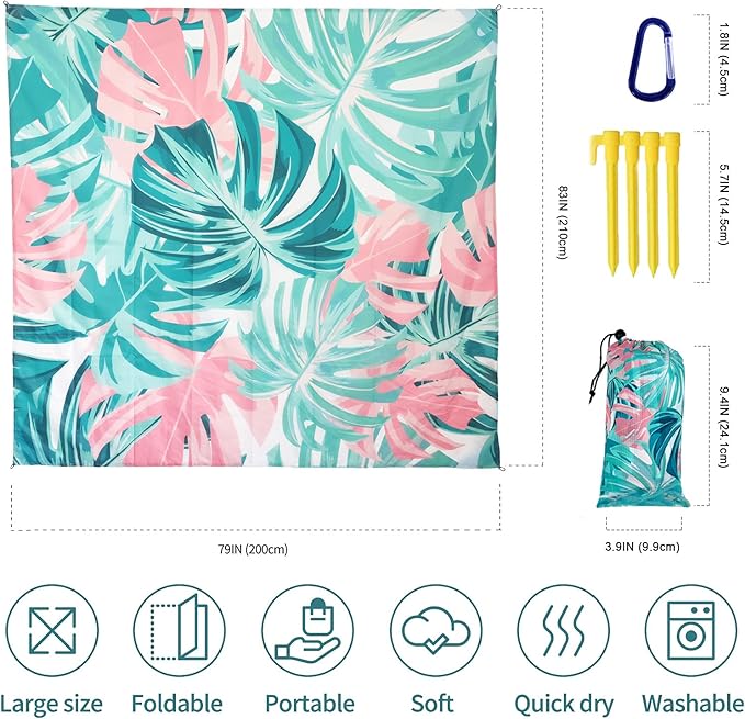- 🌊Waterproof and Non-sticky Sand: Beach Blanket is made of 210T polyester fiber, which can effectively prevent water and cracks from damaging it. Non-stick sand: Shake the beach mat gently to get rid of sand or other debris easily. Effectively prevent sand from sticking to the mat. The beach blanket can be washed in washing machine.