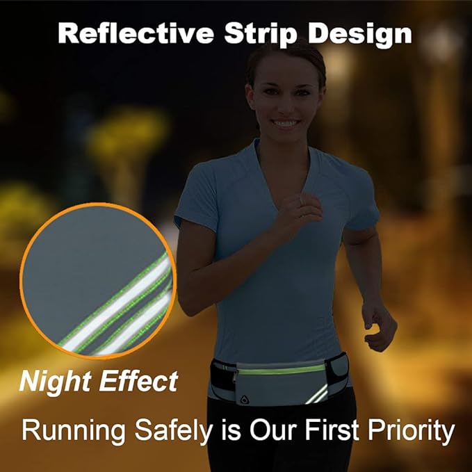 Running Belt Waist Pack Bag Fanny Pack for Phone Men Women,Thin Runners Pouch Belt for Hiking Walking Sports Cycling Traveling Money Belt,Phone Carrier Waistband for Wallet Gray