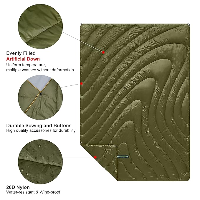 - 【Versatile Use】Prefect choice for camping,hiking,travel and picnic.You may also wear it like poncho with the snaps on the blanket,or put the blanket in the bag as a pillow.Not just for outdoor and travel,but also for home use and sofa.