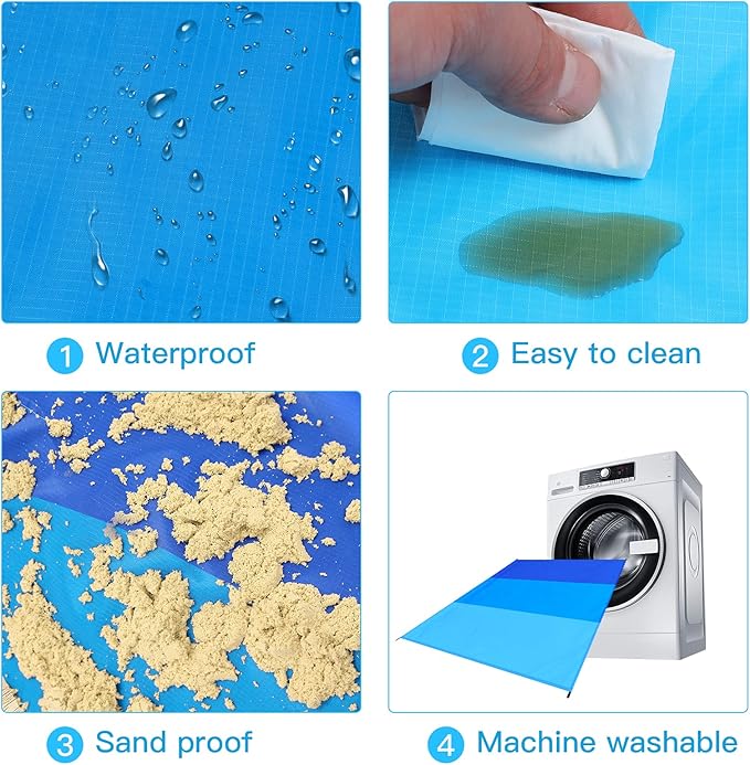 - 🌴Sandproof Beach Mat Blanket:Effectively prevent water and rips from damaging it,You just need to shake it gently that sand won't stick to the mat, Keep the Blanket clean at all times,Washed by washing machine or by hand.