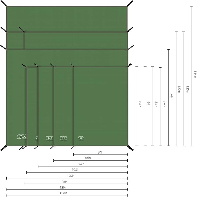 - ✔ ULTRALIGHT WEIGHT AND MULTIPLE SIZES - The ultralight footprint tarp gear can be packed into a compact size and comes with a drawstring pouch. Great for 1 person, 2 person, 4 person, 6 person tent. Available in 8 convenient sizes: 84in x 60in (7x5 ft) | 84in x 84in (7x7 ft) | 84in x 96in (7x8 ft) | 82in x 106in (6.8x8.8 ft) | 96in x 120in (8x10 ft) | 120in x 108in (10x9 ft)| 120in x 144in (10x12 ft) | 120in x 120in (10x10 ft)