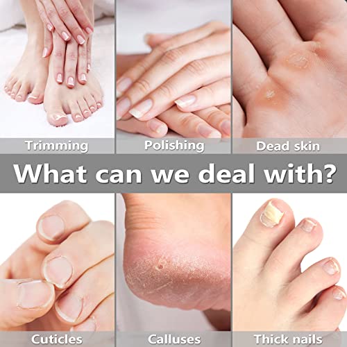 • 【5-Speed Settings & Dual Rotations】 The adjustable speeds function of this pedicure tools kit offers you 5 speeds settings (2900 to 4200rpm) to choose according to your need. And the electric nail trimmer has 2 rotation directions, clockwise and counter-clockwise. It is easy to use no matter you are left-handed or right-handed.