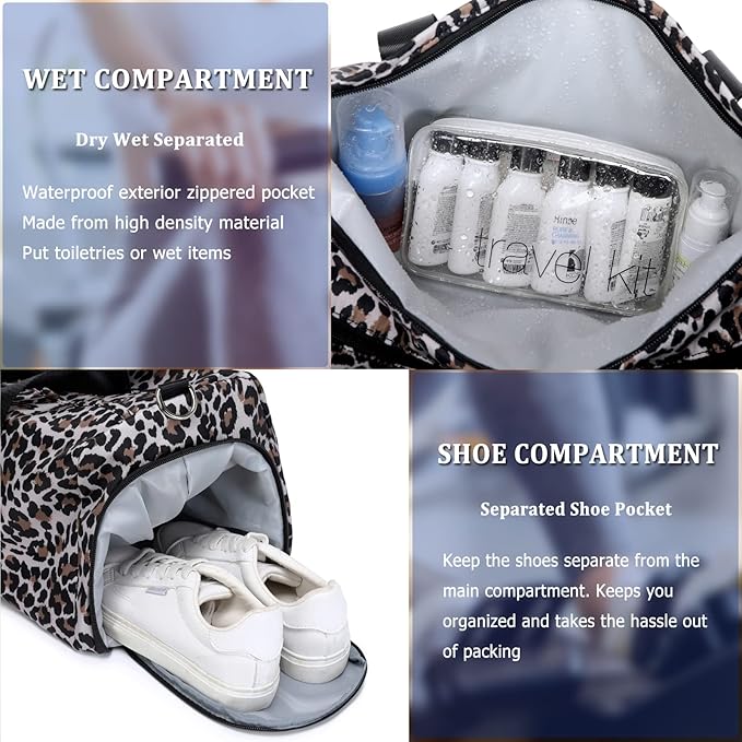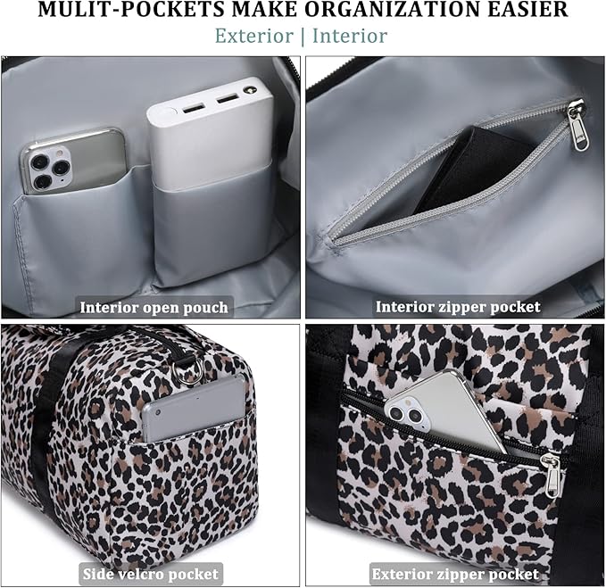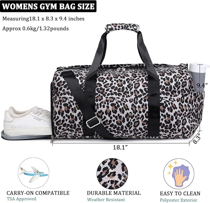 - 【MULTI-PURPOSE BAG】: The overnighter womens duffle bag's spacious interior means you can pack more than just the bare necessities! Whether you're packing clean clothes and water for rock climbing, wipe sweat towels and yoga gear for yoga, or shoes, clothes and your toiletries for a weekend getaway, this travel bag stores it all. Perfect woman travel bag, overnight bag, sports gym bag, hospital bag, carry on luggage bag.