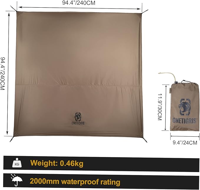 OneTigris Tent Tarp Footprint 94"x94", Large Size, Waterproof Lightweight Multifunctional Camping Tarp Beach Blanket for Camping Hiking Backpacking