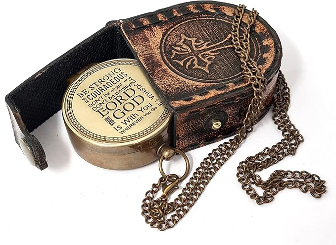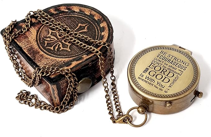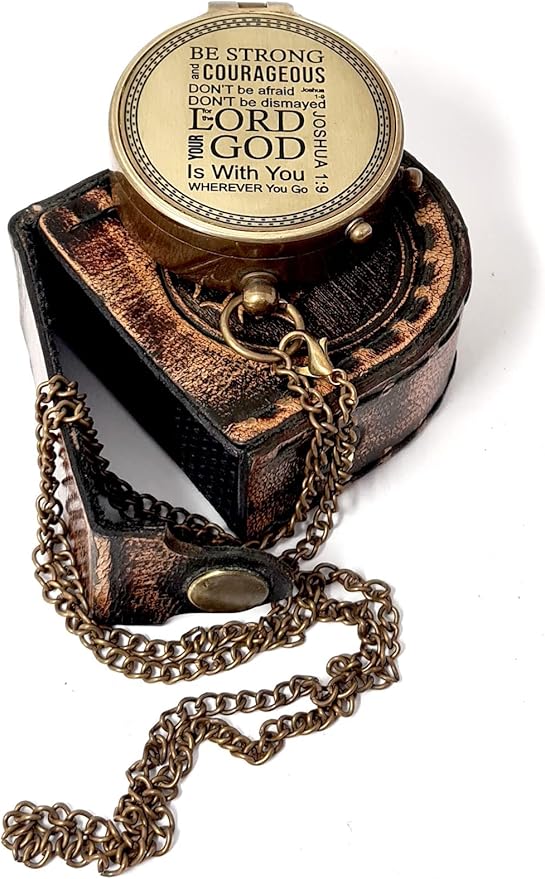 - Product Specifications: The Antique Decor Compass and Case Set has a removable chain that can be attached to a ring at the head of the compass vintage gift. It is engraved with the psalm “BE STRONG and COURAGEOUS DON’T be afraid DON’T be dismayed for the LORD YOUR GOD Is With You WHEREVER You Go – Joshua 1:9”