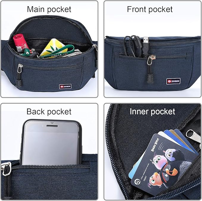 • 【AMPLE ROOM, KEEP ORGANIZED】The fanny pack is well constructed with 4 separate zippered pockets of different sizes perfect for most people who want to be hands free to carry the most needed items, include phone, passport, keys, ID and other small items. Provides spacious storage and help keep you organized.