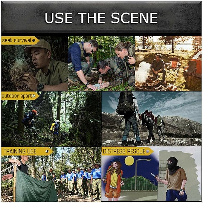 - Whistle with high accuracy compass and thermometer, can grasp the current temperature and direction in the first time;When there is no fire in the wild, you can use the fire magnifying glass attached to the survival whistle to refract sunlight onto dead grass and leaves to generate fire.