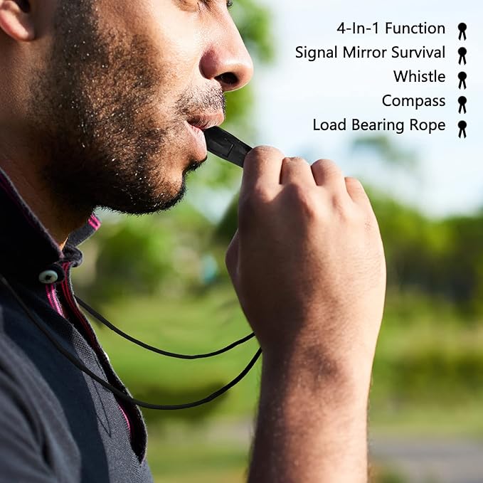 • 4-In-1 Function: our signal mirror contains a total of 4 functions, signal mirror survival, whistle, compass, load bearing rope, which are multifunctional outdoor distress tools; With built in precise aiming system, it is ideal for outdoor survival activities, long distance communication in the field, sending reflective survival mirror signals, etc