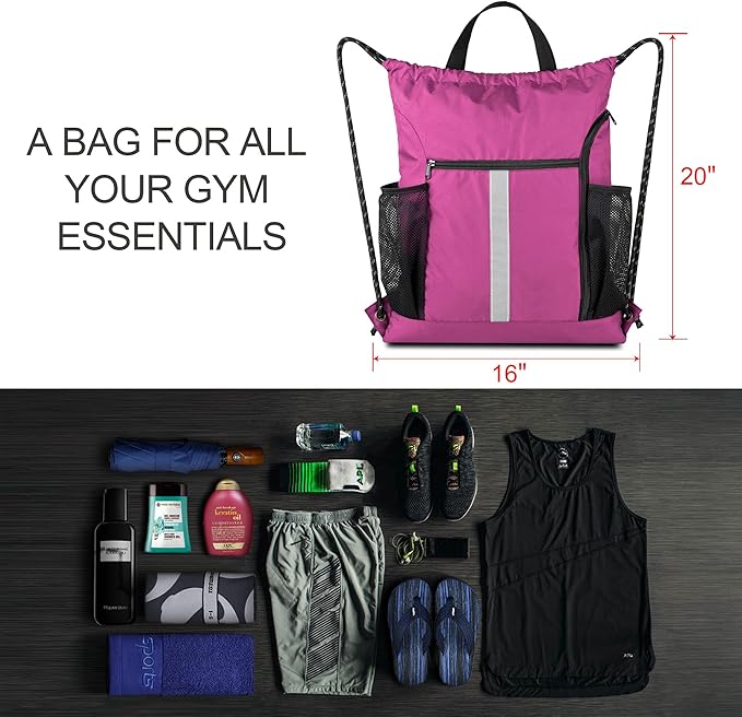 - Large Space: The main space of cinch backpack bag measures 16' x 19.5' which is big enough to hold a basketball, gym clothing, swim gear, sport towel and daily supplies. Perfect for gym, sports, trip, travel, camping, hiking, walking, running and more! It's also a great sports gift for men and women. Men and women can use it as a gym sack bag or a cinch tote bag.