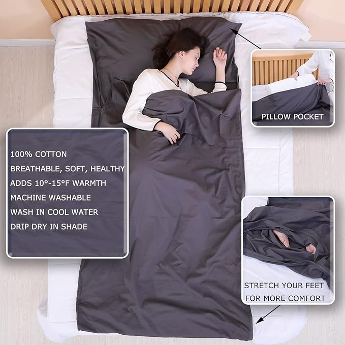 - Bring this travel sheet with you whenever you travel because the bleach on some hotel sheets is too harsh. No matter where you travel to the world, no matter what season, this cotton sleeping bag will make you feel like sleeping on your own cotton sheets at home, cool, clean, comfortable and safe.