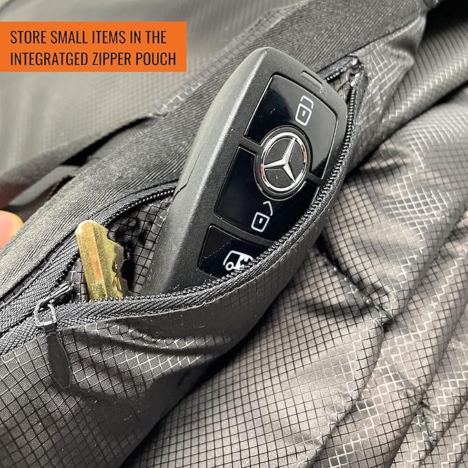 - CARRY-ALL: The corner of the blanket includes a small zippered pouch perfect for storing small accessories. The entire blanket easily stuffs into the included canvas carry bag, keeping you clean and organized.