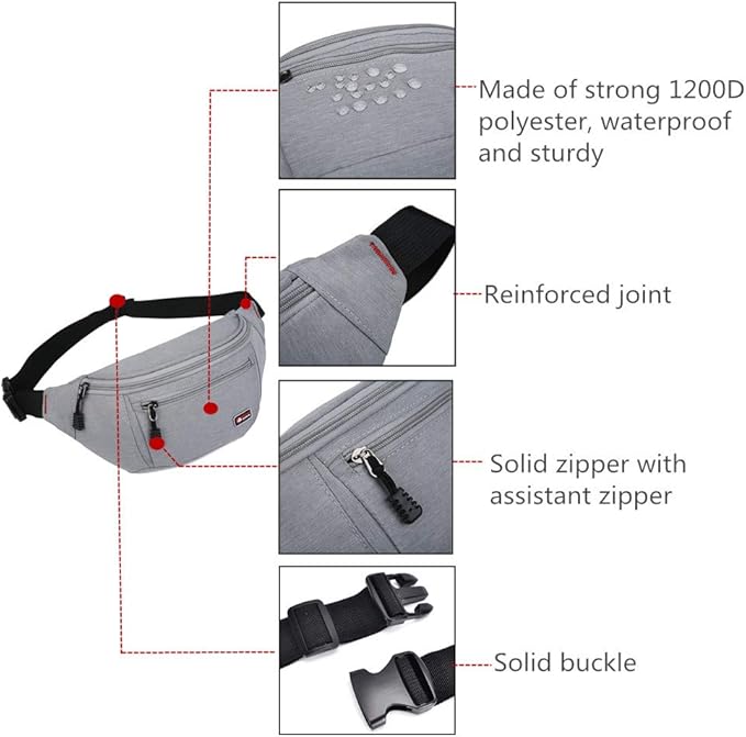 - 【AMPLE ROOM, KEEP ORGANIZED】The fanny pack is well constructed with 4 separate zippered pockets of different sizes perfect for most people who want to be hands free to carry the most needed items, include phone, passport, keys, ID and other small items. Provides spacious storage and help keep you organized.