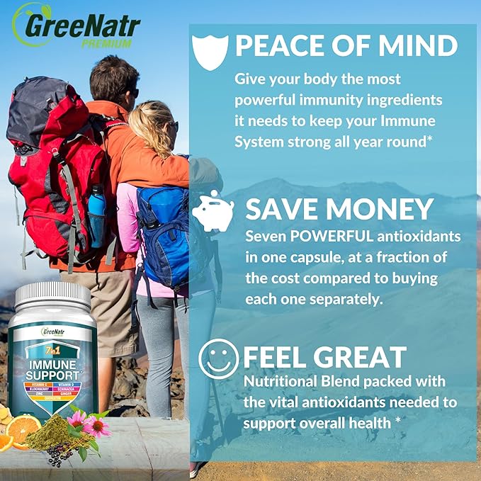 • PEACE OF MIND, ALL-YEAR ROUND PROTECTION: This powerful 7 in 1 blend full of antioxidants includes all the supplements your body needs to keep your immune system strong for all seasons including cold winters.