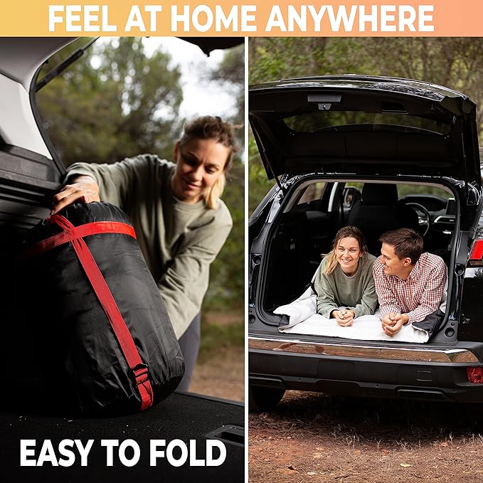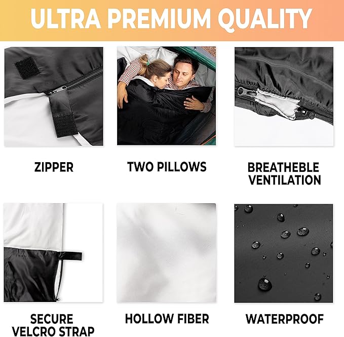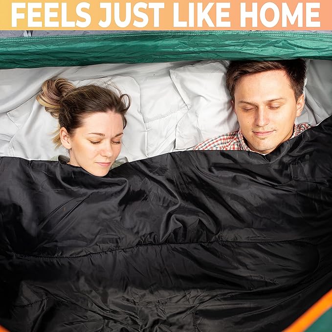 - 'Dual Size' The sleeping bag is large in size same with a queen size bed but can also be easily converted into two single sleeping bags. Also comes with 2 pillows for added comfort, helping you get an incredible night's rest any place you might be.