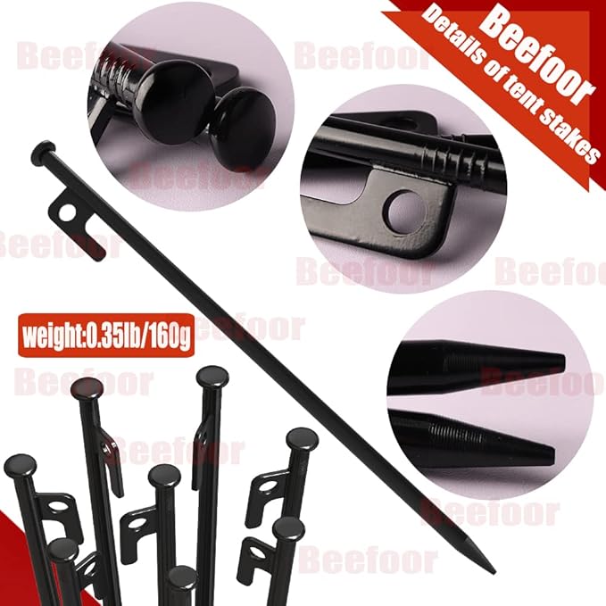 - ▶MULTI-USE: Tent stakes are suitable for nailing tents, canopies dog leash, tarps, and etc. to the ground. Perfect for outdoors camping and backpacking. Long and large tent stakes make sure your camping trip safe in the tents.