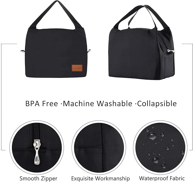 Aosbos Black Lunch Bag Women Insulated Lunch Box for Women Lunch Bags for Adult Lunchbox Lunch Tote Bento Box Cooler Bag for Work Office Picnic Loncheras Para Hombres Mujer