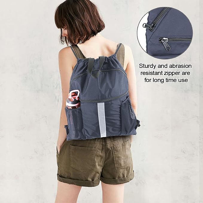 • GOOD WORKMANSHIP: These workout bags for gym women are double stitches for all seams, metal eyelets for reinforced corners. Thick strong string cords, reinforce high density PP webbing, custom zipper for long time use. Good Workmanship: The grey drawstring backpack is double stitches for All seams, Metal Eyelets for reinforced corners. Thick strong string cords, reinforce high density PP webbing, custom zipper for long time use.