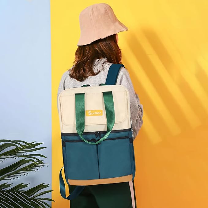 • 👜Stylish Appearance and Ideal Gift:Our Convertible insulated cooler backpack can use it as a chic tote, a hands-free backpack, making it super versatile! Arrive in style—back trolley sleeve for easily sliding over your luggage/suitcase handles, dual padded shoulder straps provide optimum comfort. With this stylish beach cooler backpack, you will get a lot of compliments. Moreover, It's a great gift idea for women, perfect for lunch, picnic, work, travel, hiking, biking, park, beach and Disney.