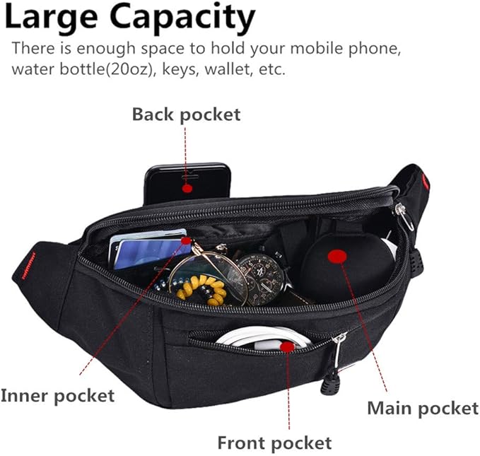 • 【DURABLE MATERIALS & LIGHT WEIGHT】 Our fanny pack for men and women are made of high quality material which is durable and light-weight. Ensure a comfortable & long-lasting usage.