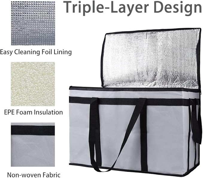 - 【SUPER PRACTICAL】:Maybe you're frustrated that you don't have bags big enough to store hot and cold items.This Insulate Delivery bag is large and strong enough to have an insulating layer that can store hot and cold items for a long time and keep them fresh.Ideal catering bag