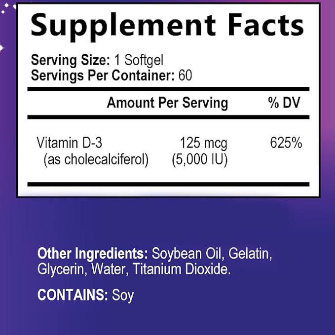 - High Potency Dose: Our Vitamin D3 supplement delivers a potent 5000 IU (125 mcg) dose to ensure your body gets the daily amount it needs for overall wellness.