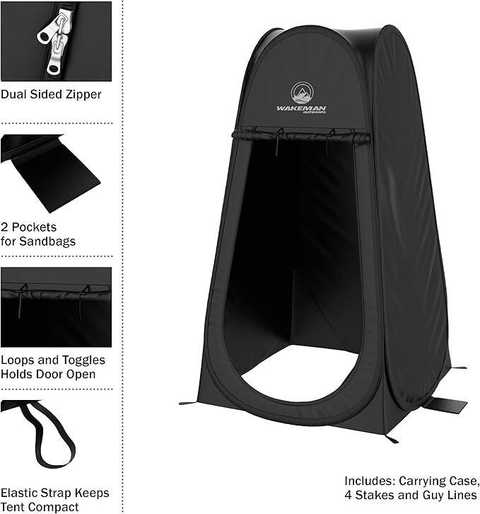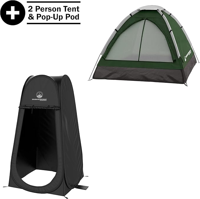 Wakeman Tents 2-Person Tent with Pop-Up Design and Carry Bag - Includes Pop-Up Privacy Tent, Dressing Room, or Portable Shower - Camping Gear by Wakeman