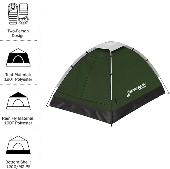 • WATER-RESISTANT - The 190T polyester with polyurethane coating on the hiking tent body and detachable rain flies help to ensure water does not get into the tent, great for camping, providing shelter at the beach, or use it as a kids’ play tent.