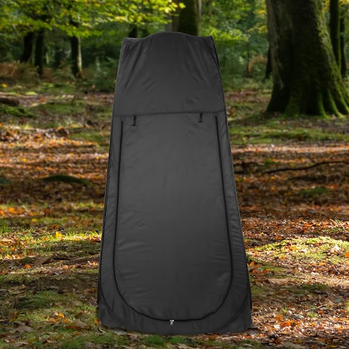 • POP-UP POD - This easy-to-use pop-up tent automatically sets up in seconds, and features a dual sided zippered door, 4 stakes and guidelines, and can be used as a weather pod, changing room, shower, or toilet.