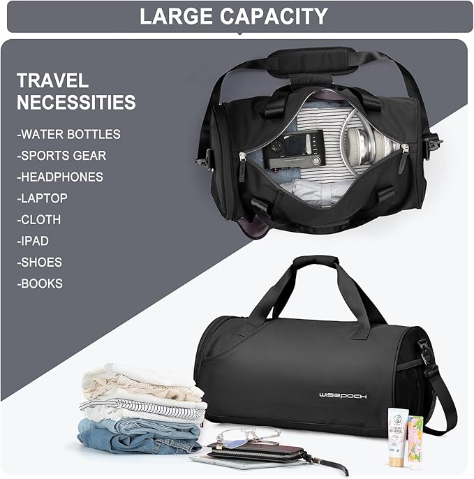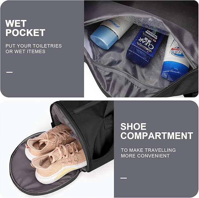 - Separate Shoe Compartment: The travel duffel bag features a special separate shoe compartment to keep shoes or dirty clothes separate from other gear without getting other items dirty. Perfect for use as a travel bag, overnight bag, men's gym bag, sports bag, dance bag, workout bag, beach bag