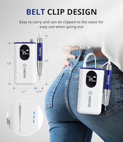 - Ultra-high RPM: The AIRSEE 35000 RPM Pro-Grade Electric Nail Drill is ideal for shaping artificial nails,smoothing calluses,buffing nails, cleaning under the free edge, shaping natural nails,cleaning cuticles, fills, and product removal