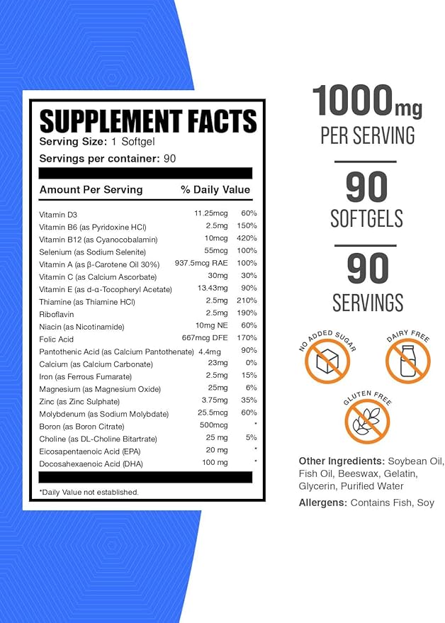 • Simplify your Health Routine: Step into a world of enhanced well-being with our Multivitamin for Women, or Women’s Multivitamin with Iron. Each Multivitamins for Women softgels, with Fish Oil, is packed with a carefully selected array of nutrients, making your health regimen simple yet powerful. Why juggle with multiple supplements when one can do it all?