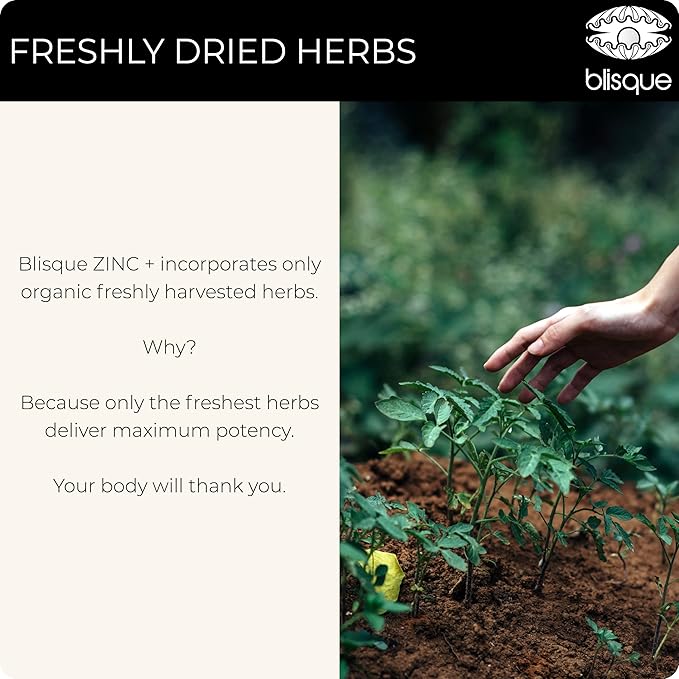- IMMUNE SUPPORT: Blisque ZINC + supplies your immune system with superior organic medicinal plants that absorb quickly and act as an immune defense to support respiratory health, aid in the recovery of ailments, and keep cells functioning properly.*
